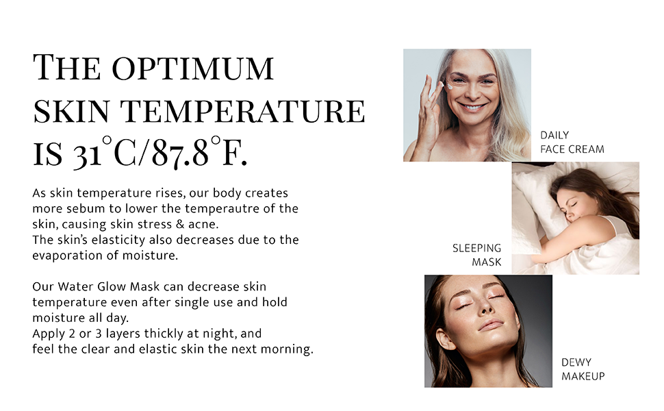 - 💦 HOW TO USE - *In 20’s*: Once or 2x a week as a sleeping pack for moisturized, energetic skin. *In 30’s*: 3x a week as a sleeping pack to prevent sagging skin caused by dryness. *40 ‘s~ 50’s*: Use as a sleeping pack 3+ times a week and as a day cream to prevent deepening wrinkles in advance. *60+*: Use as a daily sleeping pack. If using in conjunction with other creams, apply Snow White Water Glow Mask over other products to create a moisturizing barrier.